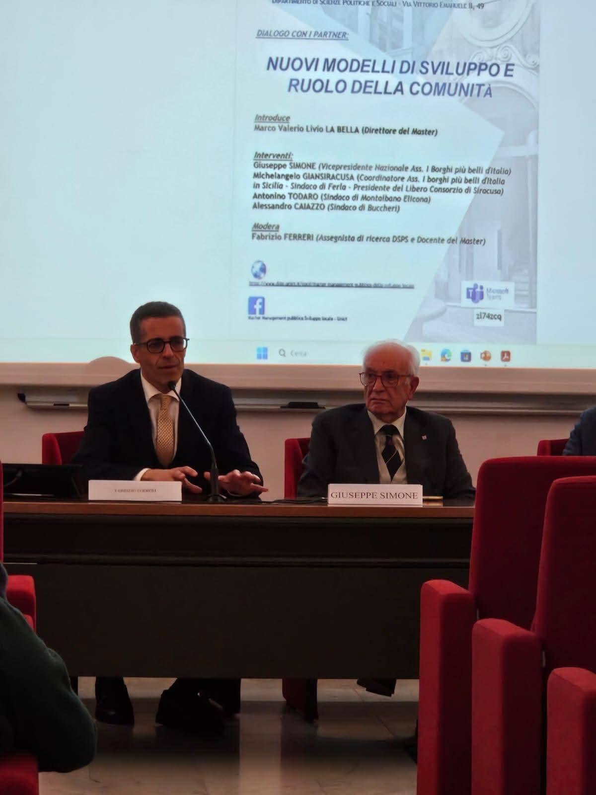 Il 4 dicembre sono stato presente, in qualitร di Presidente del Libero Consorzio di Siracusa, allโincontro "Nuovi modelli di sviluppo e ruolo della comunitร ", organizzato dal Master Universitario di II livello in Management Pubblico dello Sviluppo Locale dellโUniversitร di Catania.
