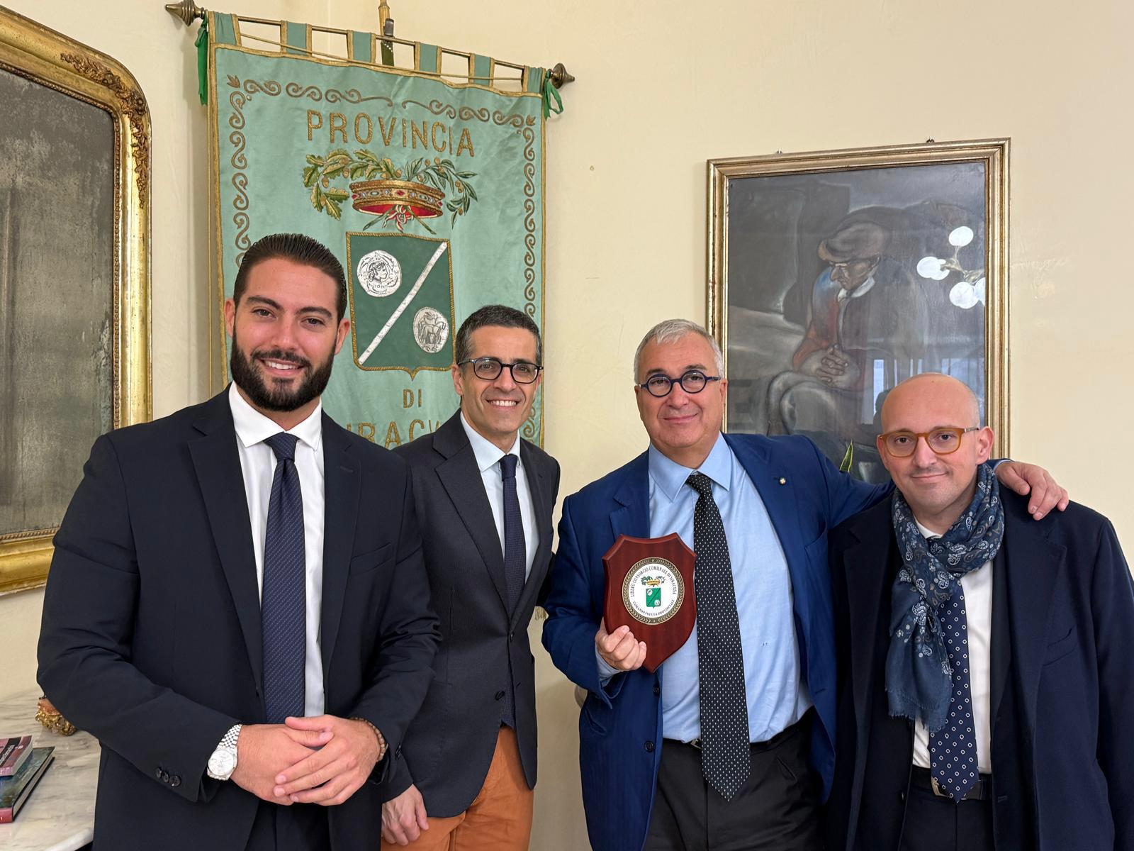 Nella giornata di ieri, presso gli uffici del Libero Consorzio Comunale di Siracusa, il Presidente Michelangelo Giansiracusa, insieme al Vicepresidente Diego Giarratana e al Comandante della Polizia Provinciale, Avv. Daniel Amato, ha ricevuto il Prof. Francesco Tufarelli, Direttore Generale della Presidenza del Consiglio dei Ministri