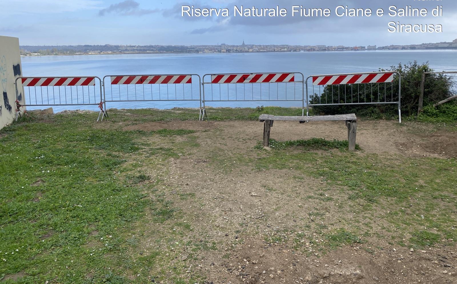 Recinzione adiacente al Faro Caderini in zona “A” della R.N.O. posizionata sul belvedere prospiciente al Porto Grande di Siracusa